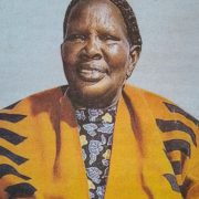 Salina was beloved mother of Elijah Koskei, Reuben Kemboi (Tebeson), Janeth Koskei (Mosoriot), Wesley Kibet Mogotei (Nairobi), the late Silah Kirui, Geoffrey Tenai (Nairobi) and Jones Kirorio (Kenya Police Service). She was blessed with daughters-in-law, 14 grandchildren and several great-grandchildren.